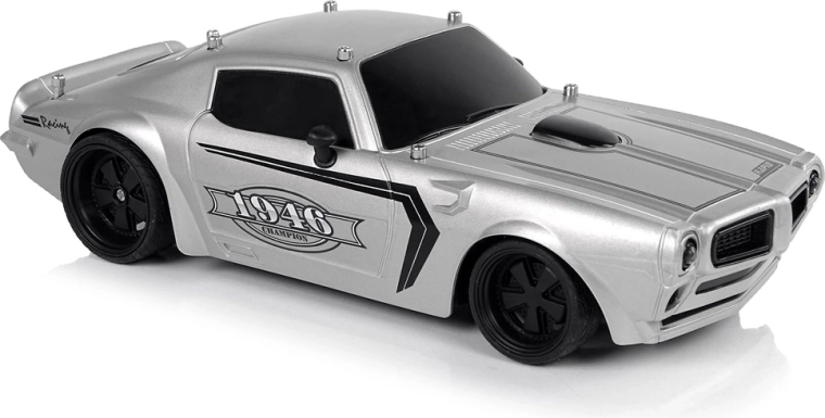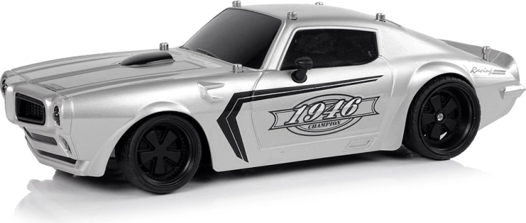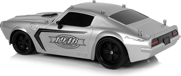 Vehiculul are o construcție ușoară și robustă, design sport cu geamuri negre și detalii negre pe capotă și autocolante Champion 1946. Anvelopele din cauciuc garantează aderența la carosabil în timpul conducerii. Conducerea vehiculului este o distracție mai ales pentru cei mai mici, de aceea telecomanda inclusă în set permite controlul micului model de mașină prin două butoane separate pentru mers înainte/înapoi și pentru virajele laterale.
