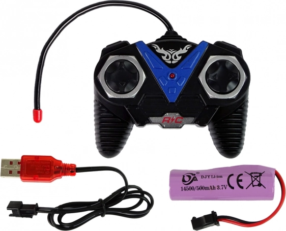 .Jucăria cu telecomandă este certificată CE, ceea ce atestă în primul rând calitatea înaltă a produsului, precum și siguranța utilizării sale. Modelul vehiculului este alimentat de o baterie de 3,7 V 500 mAh, iar telecomanda (două bucăți) este alimentată de baterii AA de 1,5 V, care nu sunt incluse în pachet. Potrivită pentru copii mai mari de 6 ani.