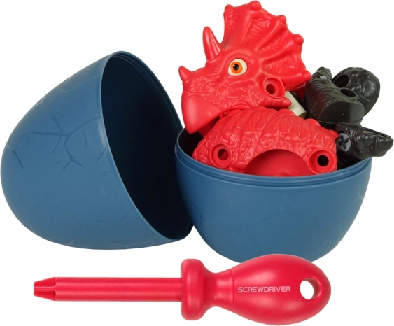 Construiește-ți propriul triceratops! Acest set creativ pentru copii îmbină distracția DIY, dezvoltarea motricității fine și gândirea logică. Dinozaurul poate fi dezasamblat și reasamblat cu ajutorul șurubelniței incluse, piesele sunt mobile, iar totul poate fi depozitat în ou. Fabricat din material sigur, de calitate, cu certificare CE conform EN 71.
