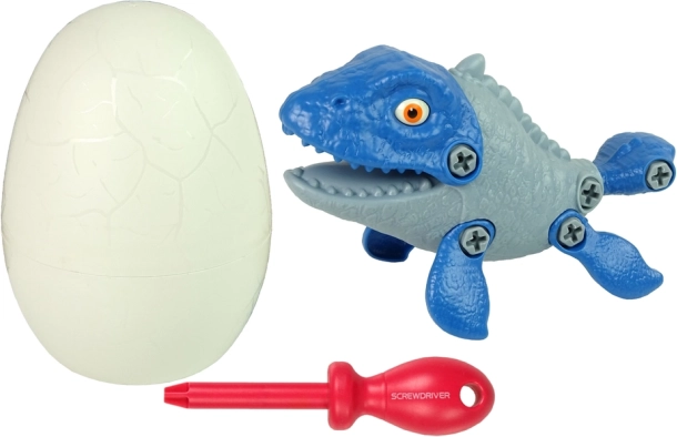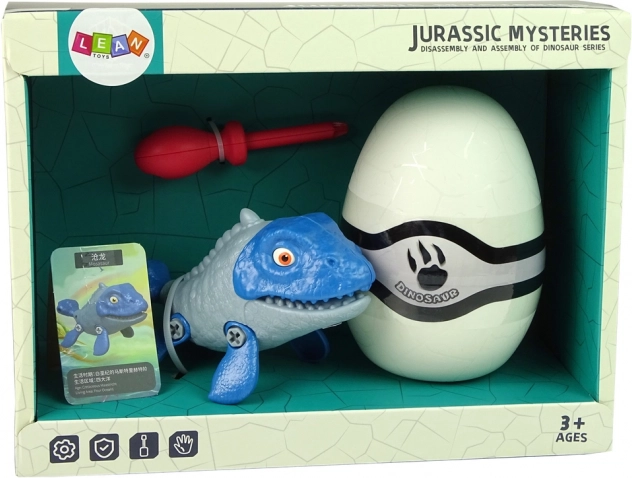 Construiește-ți propriul animal preistoric! Acest set creativ include un mosazaur demontabil, un ou și o șurubelniță. În timpul asamblării, copiii își exersează motricitatea fină, gândirea logică și coordonarea mână–ochi. După joacă, piesele pot fi depozitate în oul practic. Realizare sigură din plastic de calitate, certificat.