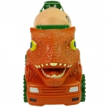 Toba realistă se rotește, iar partea frontală a vehiculului amintește fidel de un dinozaur – cu ochi, dinți și creastă pentru și mai multă distracție.