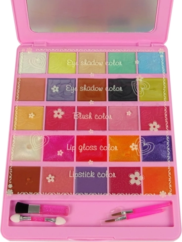 Fiecare fetiță visează să arate ca o prințesă. Cu paleta cosmetică pentru copii, care conține produse de make-up valoroase, aceste vise sunt mai aproape de realitate. La deschidere apar farduri de ochi, farduri de obraz, glossuri de buze și rujuri, completate de o oglindă practică pentru aplicarea precisă a machiajului. Acest set este sigur și fără parabeni, fiind ideal pentru copii și pielea lor delicată.