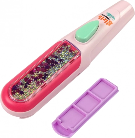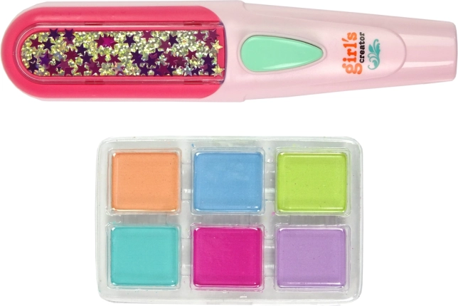 Lăsați fiica dumneavoastră să descopere noi stiluri prin acest set pentru vopsirea părului, care include tot ce este necesar pentru decorarea părului. Placa de îndreptat inclusă permite aplicarea ușoară a culorilor și crearea de coafuri care vor fi cu siguranță admirate de toate prietenele la școală. Pentru o utilizare facilă, este suficient să alegeți trei culori, să le introduceți în aplicator, să pulverizați părul cu apă și să treceți cu placa de îndreptat. Coafura este gata rapid și fără efort!