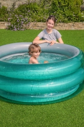 Piscina gonflabilă pentru copii Bestway este special concepută pentru copiii cu vârsta de peste 3 ani. Datorită dimensiunilor de 150 cm x 53 cm oferă suficient spațiu pentru activități acvatice distractive. Părțile laterale transparente cu o parte metalică argintie adaugă un aspect stilat care va plăcea fiecărui copil.