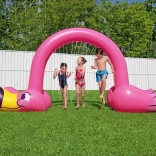 Această poartă gonflabilă mare cu stropitori, în design de flamingo, conectabilă la furtunul de grădină, creează un tunel acvatic grozav, pe sub care copiii aleargă și se lasă stropiți de duze fine. Datorită înălțimii de 1,93 m, se pot implica în joacă și adulții.