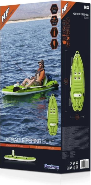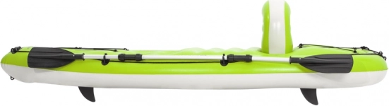 Caiac gonflabil ușor și stabil pentru o persoană, ideal pentru vâslit recreativ și pescuit. Oferă structură durabilă din vinil, spătar integrat pentru confort, suport pentru undiță, prinderi pentru vâslă și derivă direcțională detașabilă pentru manevrabilitate mai bună. În pachet găsiți vâslă, pompa manuală și petic de reparare.