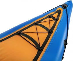 Pentru direcție precisă și încredere la vâslit, caiacul este echipat cu două aripioare detașabile, ușor de adaptat la condiții. Zonele de depozitare cu corzi elastice bungee la prova și pupa găzduiesc mărunțișuri, gustări și echipament ușor. După sosire, barca se dezumflă rapid și, datorită greutății mici, se transportă ușor.