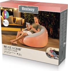 Fotoliul gonflabil BESTWAY cu dimensiunile 102 × 97 × 71 cm este o soluție practică pentru casă, cămin studențesc sau terasă. Datorită iluminării LED integrate (7 culori), creează o atmosferă plăcută la vizionarea filmelor, serile de jocuri sau relaxarea după muncă. După dezumflare ocupă minimum de spațiu și se transportă ușor.