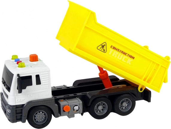 Această basculantă de construcții galbenă imită fidel un vehicul real, astfel încât copiii se pot transpune în rolul unui operator pe șantier. Datorită benei ridicabile, pot muta cu ușurință „materialul”, iar cu lumini și sunete se bucură de un joc mai autentic. Mecanismul inerțial: e suficient să-l împingi și camionul pornește singur.