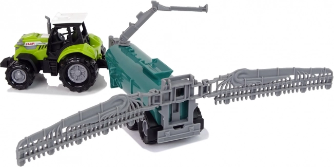 Acest tractor realizat cu atenție la detalii, în clasicul verde, este ideal pentru joacă atât în interior, cât și în aer liber. Datorită pulverizatorului detașabil și brațelor rabatabile, copiii pot imita realist munca pe câmp și pot descoperi lumea utilajelor agricole.