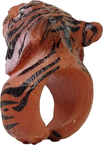 Un inel distractiv și sigur, cu un cap realist de tigru bengalez, care stimulează imaginația și învățarea prin joc. Este ușor, confortabil, iar finisajul pictat este netoxic și sigur pentru copii. Un accesoriu grozav pentru costume și pentru jocuri educative despre animale.