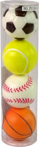 Set distractiv și sigur de patru mingi moi pentru copii, care susține mișcarea, joaca în aer liber și în interior și dezvoltă motricitatea. Mingi colorate inspirate de sporturi precum fotbal, golf, tenis și baschet, ușoare, plăcute la atingere și potrivite pentru copii de la 6 ani.