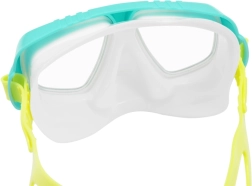 Masca se ajustează ușor datorită curelei reglabile și etanșează bine în jurul ochilor pentru a minimiza pătrunderea apei.