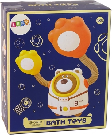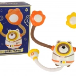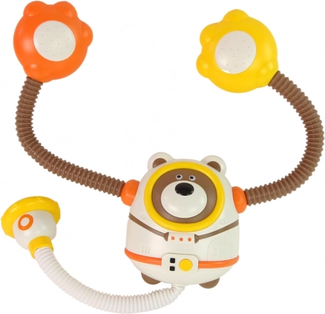 Această jucărie acvatică amuzantă este ideală pentru copiii care se tem sau nu prea îndrăgesc băile. Ursulețul astronaut, cu duș integrat pe baterii, pulverizează apă din mâini, făcând baia mai distractivă și mai plăcută. Este suficient să apeși butonul on/off de pe burtica ursulețului și distracția poate începe!