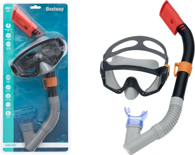 Descoperă lumea subacvatică cu setul ușor și durabil BESTWAY. Masca oferă lentile clare și rezistente cu protecție UV și bordură facială moale pentru aderență excelentă fără infiltrații. Snorkelul are protecție împotriva pătrunderii apei și secțiune flexibilă pentru ajustare confortabilă.