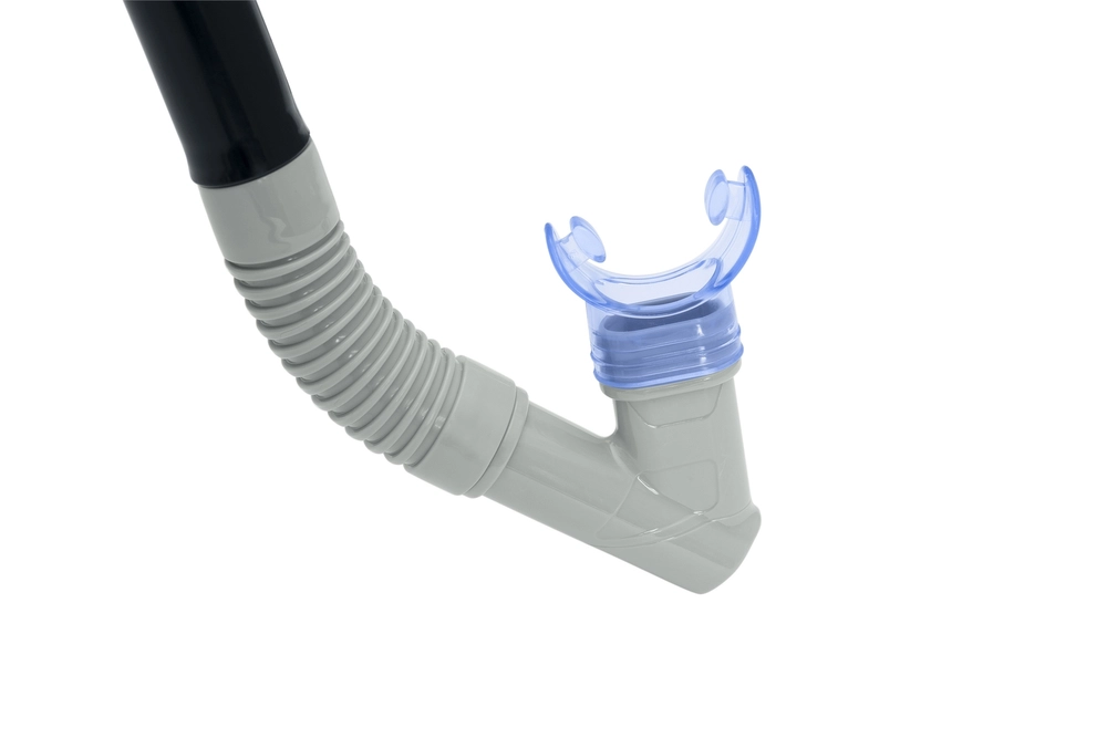 Snorkel cu protecție superioară împotriva stropilor de apă și secțiune flexibilă pentru o poziție naturală și respirație liniștită.