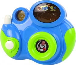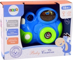 Acest aparat foto pentru copii, distractiv și sigur, îi ajută pe cei mici să descopere lumea imitându-i pe adulți. La apăsarea butoanelor pornește 3 melodii, lumini colorate ca un bliț și un sunet realist de declanșare. Obiectivul rotativ, atunci când este învârtit, scoate un zgomot plăcut de zornăit, stimulând curiozitatea și dezvoltând motricitatea fină.