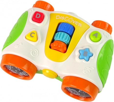 Sunete vesele, melodii și efecte luminoase îi motivează să exploreze în continuare. Jucăria ajută la recunoașterea culorilor și formelor și oferă și învățarea literelor. Execuția de efect și culorile vii transformă telescopul într-un accesoriu atrăgător pentru colțul de joacă al fiecărui mic explorator.