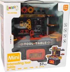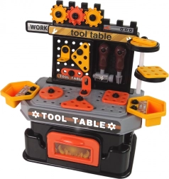 Setul este fabricat din plastic rezistent, în culori potrivite oricărui atelier de acasă. Elementele tip imbus și cu șurub, orificiile din blatul de lucru pentru înșurubare și menghina funcțională transformă jocul într-o activitate cu sens, care dezvoltă îndemânarea, răbdarea și precizia. O idee excelentă de cadou pentru micul meșter.