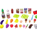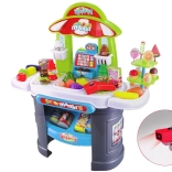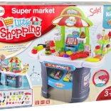 Scannerul manual emite bipuri și lumină roșie la citirea produselor, adăugând autenticitate jocului. Setul include casă de marcat, bancnote și monede, stand cu dulciuri, machete de alimente și băuturi, precum și diverse ambalaje din carton și plastic. Construcția și materialele de calitate, certificate, asigură joacă în siguranță pentru copiii de la 3 ani.