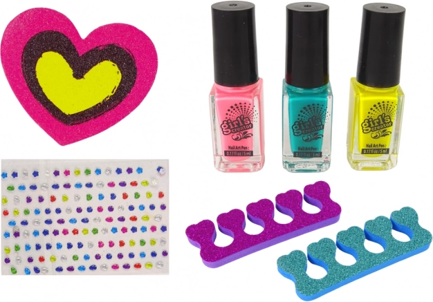 Vă prezentăm Studio de unghii pentru fete, ideal pentru micile suflete creative. Fetele pot experimenta cu lacuri de unghii și pot crea modele originale, care se usucă rapid și le vor impresiona pe toate prietenele. Datorită acestui set, își dezvoltă imaginația, creativitatea și abilitățile manuale.