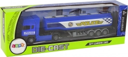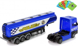Aspectul camionului este inspirat din vehicule reale cu utilitate rutieră și permite fiecărui mic colecționar să își extindă colecția. Designul albastru complet cu inscripții albe "POLICE" oferă un aspect realist. Cisterna este ușor de manevrat și permite o mare capacitate de manevră.