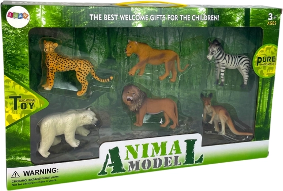 Acest set conține 6 figurine care reprezintă animale africane cunoscute, cum ar fi leul, zebra sau cangurul. Fiecare figură este realizată din cauciuc tare, garantând astfel durabilitatea și rezistența lor. Înălțimea figurinelor variază de la 9 cm la 10 cm, asigurându-le manipularea ușoară pentru copiii de la trei ani în sus.