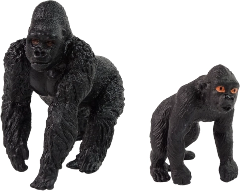Acest set include o gorilă adultă și un pui, realizate autentic. Fiecare figurină este turnată cu grijă din material de calitate și pictată manual pentru a reproduce cât mai fidel aspectul real al acestor animale fascinante. Dimensiunea este adaptată mâinilor copiilor pentru o prindere confortabilă și joacă în siguranță.