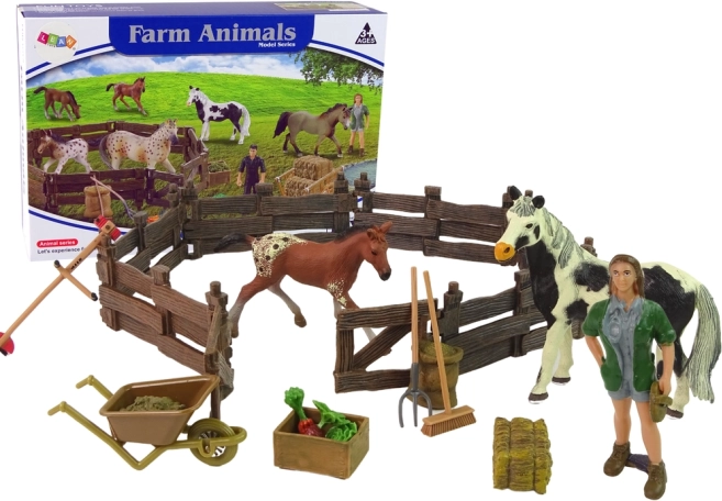 Construiește și explorează propria fermă, datorită figurinelor realiste de cai și a gardului din lemn. Acest set distractiv permite copilului să creeze un loc pentru îngrijirea cailor și să învețe elementele de bază ale creșterii și activităților zilnice ale unui fermier.