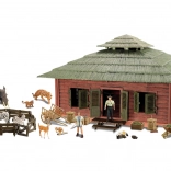 Grajdul cu uși și ferestre deschizătoare oferă o casă confortabilă pentru figurinele dumneavoastră. Dimensiunea gardului și aranjamentul fermei depind doar de decizia și creativitatea dumneavoastră. Doi fermieri vor menține ordinea și fiecare animal va avea locul său.