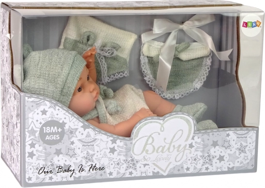 Păpușa bebeluș dulce este jucăria ideală pentru micii îngrijitori. Permite copiilor să dezvolte simțul responsabilității și empatiei printr-un joc plin de distracție. Îmbrăcată într-un pulover drăguț cu căciuliță asortată de culoare verde aprins cu detalii din dantelă. Are membre și cap mobile, ceea ce permite păpușii să stea în poziție așezată sau culcată. Hăinuțele sunt ușor de schimbat, adăugând varietate și creativitate jocului.