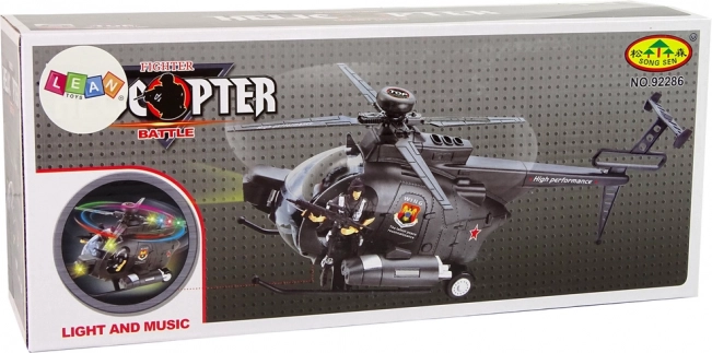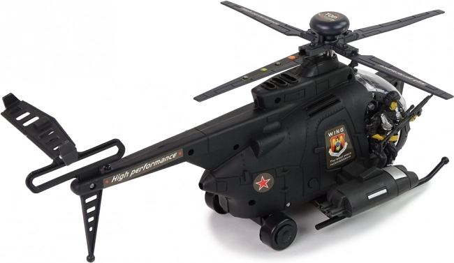 Lumini și sunete fac jocul realist. Elicopterul este colorat în negru, având aripi larg răsfirate și un tren de aterizare pentru o aterizare ușoară. Doi comandanți sunt parte a jocului – unul pilotează și celălalt este pregătit pentru acțiune!