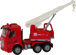 Vehiculul este echipat cu macara cu cârlig, ideal pentru simularea joasă a ridicării și tractării. Textul 'FIRE CONTROL' și designul elegant susțin imaginația copiilor.