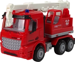Camion de pompieri roșu cu scară extensibilă albă și roți mobile. Textul lateral 'FIRE CONTROL' adaugă un element realist pentru acțiuni de salvare.