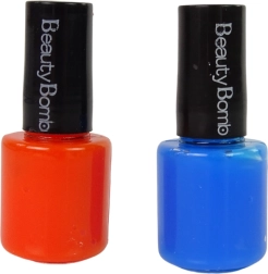 Setul conține două lacuri de unghii - unul portocaliu și altul albastru, care oferă unghiilor o înfățișare vibrantă și strălucitoare.