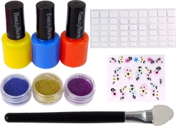 Prezentăm un set versatil pentru decorarea unghiilor care include lacuri de unghii colorate, diferite abțibilduri modelate, sclipici praf și alte accesorii creative. Acest set este conceput pentru a dezvolta creativitatea și abilitățile motorii fine ale copiilor în timp ce își creează propriul stil.