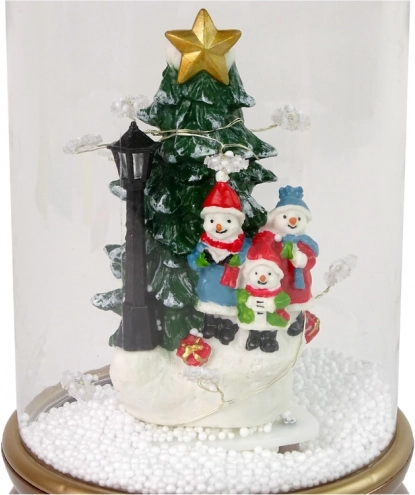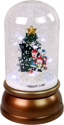 Globul decorativ de Crăciun din sticlă, cu scena unei vesele familii de oameni de zăpadă lângă brad, adaugă interiorului tău o notă festivă unică. Pompa internă recirculă zăpada din soclu și o pulverizează de sus, rezultând un efect realist de zăpadă căzătoare. Decorațiunea este iluminată cu o lumină albă plăcută, care induce o atmosferă de iarnă caldă.