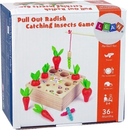 Acest joc educativ din lemn combină introducerea morcovilor de diferite mărimi și prinderea magnetică a viermișorilor. Copiii își exersează priza, precizia și răbdarea și, în același timp, își dezvoltă percepția culorilor și a mărimilor. Baza robustă din lemn, cu suprafață netedă, este concepută pentru joc sigur pentru copiii de la 3 ani.