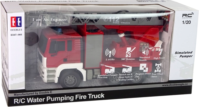.Mașina de pompieri este alimentată de o baterie de 4,8V 400 mAh inclusă în pachet. Pentru telecomandă utilizați 2 baterii de 1,5V tip „AA” (nu sunt incluse). Jucăria este potrivită pentru copii mai mari de 6 ani. Setul are certificat CE și respectă standardul EN 71. Este ambalat într-o cutie de carton cu fereastră transparentă, fiind ideală pentru cadou.