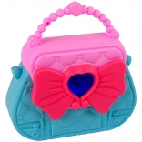 Geantă stilată în roz-turcoaz, cu o fundă proeminentă și detalii decorative, ideală pentru păstrarea tuturor micilor comori.