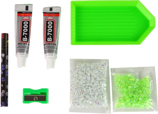 Conține toate elementele necesare, inclusiv două pachete de cristale, lipici, bol pentru cristale și un băț de ceară.