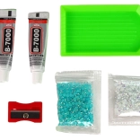 Conținutul pachetului: pandantiv ren (înălțime aprox. 7 cm), 2 pachete de cristale colorate, tavă pentru cristale, 2× tub de adeziv, bețișor cu ceară și ascuțitoare.