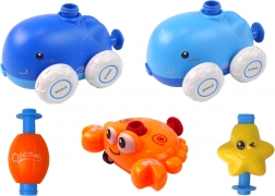 Alege un balon de o anumită culoare și atașează-l la mașinuță. Apoi conectează mașinuța la lansatorul în formă de delfin și umflă balonul cu ajutorul unei manete. După ce balonul este umflat, apasă butonul GO pe lansator și mașinuța va fi lansată înainte. Urmărește viteza cu care traversează camera. Ai la dispoziție mașini în formă de creaturi marine, cum ar fi delfinul sau crabul.