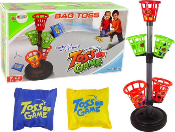 Distracția constă în faptul că fiecare jucător trebuie să arunce săculețul către coșul de culoarea sa; fiecare coș are un număr, iar după folosirea săculeților trebuie să adunați punctele și să vedeți care este scorul.