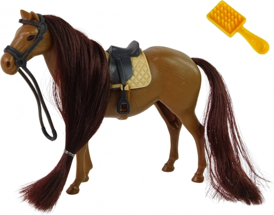 Figurină cal de pieptănat cu aspect realist și coamă maro este un accesoriu minunat pentru micii iubitori de cai. Copiii se vor bucura de posibilitatea de a pieptăna coama și își vor dezvolta imaginația și abilitățile motorii fine.