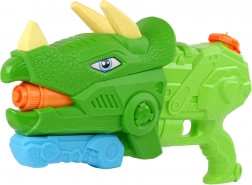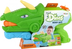 Vă prezentăm pistolul cu apă Dinozaur Triceratops cu o capacitate de 1330 ml de apă și o rază de acțiune de până la 8 metri. Acest pistol este în formă de dinozaur, colorat verde cu portocaliu, și arată ca un personaj din filmele preferate de copii.