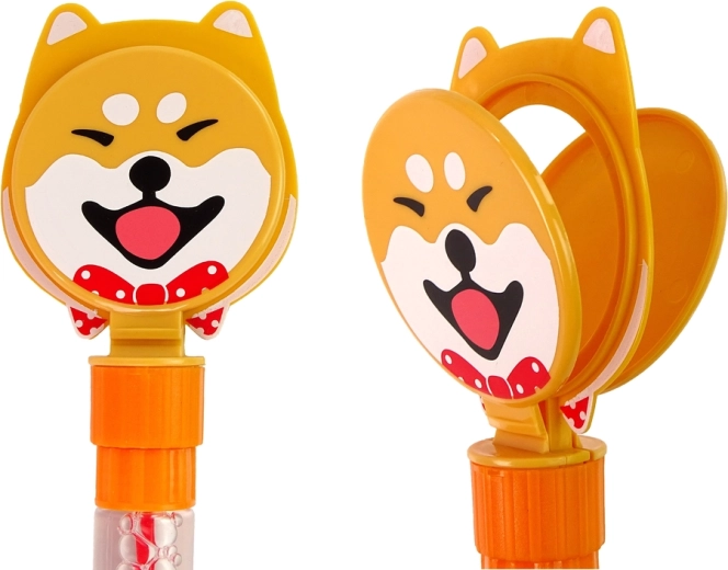 Această jucărie este potrivită pentru evenimente speciale sau pentru joaca împreună în grădină. Recipientul are forma unei sticle alungite, iar la capăt se află un cățeluș. Are și o funcție suplimentară: în mișcare emite un sunet de clic, oferind nu doar efecte vizuale, ci și sonore.