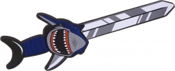 Grafica pronunțată cu rechin pe sabie și scut stimulează imaginația și transformă orice aventură într-o expediție navală epică.