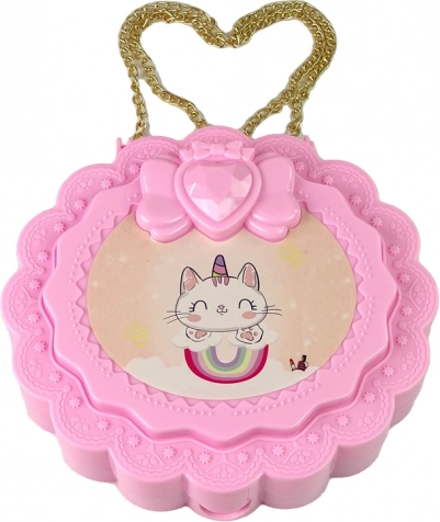 Ambalajul roz cu motiv unicorn și mâner în formă de inimă va bucura orice mică domnișoară și, în același timp, păstrează practic toate accesoriile.