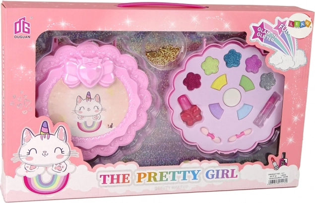Acest set de frumusețe roz cu unicorn este ideal pentru copiii care adoră să experimenteze cu culori și look-uri. Conține farduri pentru copii, sclipici, ruj roz, lac de unghii, aplicatoare din spumă și un colier auriu – toate concepute pentru utilizare sigură pe pielea sensibilă a copiilor.